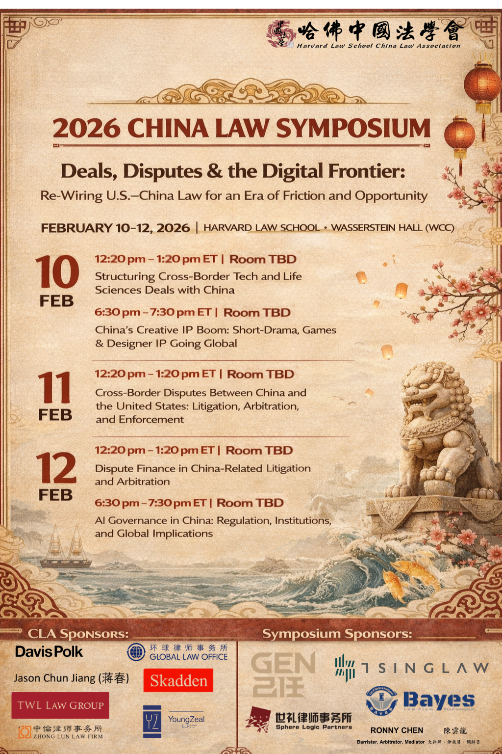 Join the Harvard Law School China Law Association for the 2026 China Law Symposium, a three-day event exploring the deals, disputes, and digital questions shaping U.S.-China law today. After the final panel on Thursday, February 12th, there will be a post-Symposium reception (details forthcoming). RSVP here.